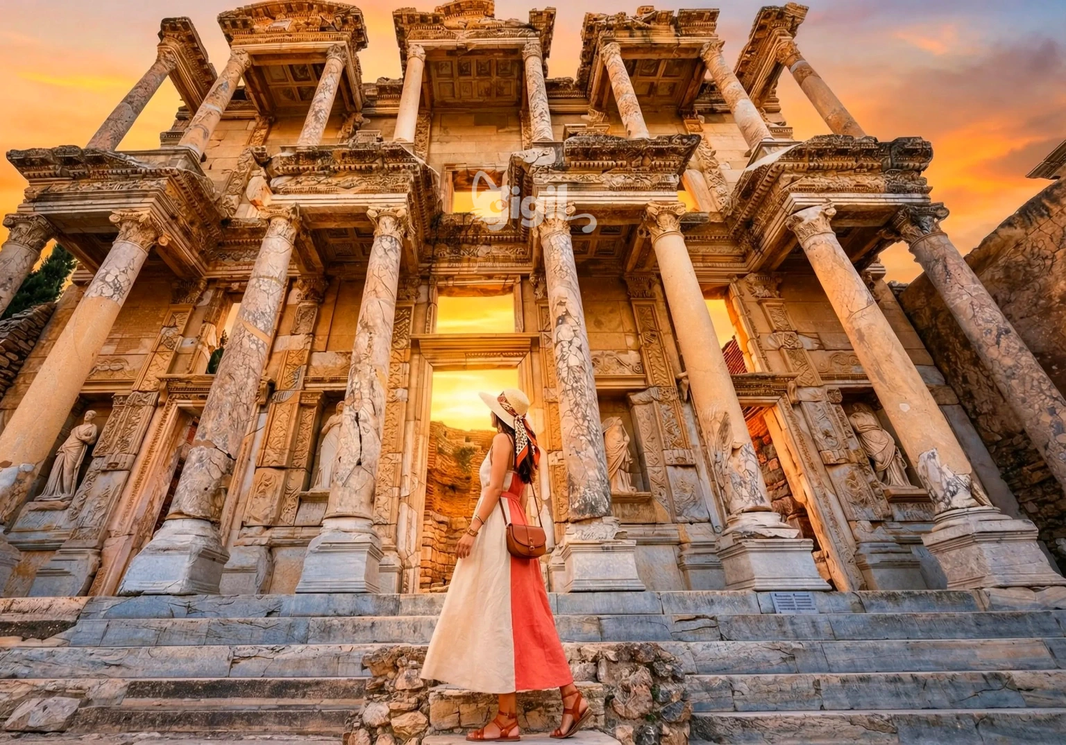 Ephesus Ancient City feels less like a ruin and more like a grand city waiting for its crowds to return. As you walk along the marble streets, the scale of the place becomes immediately clear through the Library of Celsus, the Great Theatre, and the long ceremonial avenues that once connected civic life, trade, and belief. Every corner reveals how powerful and sophisticated this Roman metropolis once was. It is easy to picture philosophers, merchants, and pilgrims moving through the same urban scene that now unfolds in front of you.